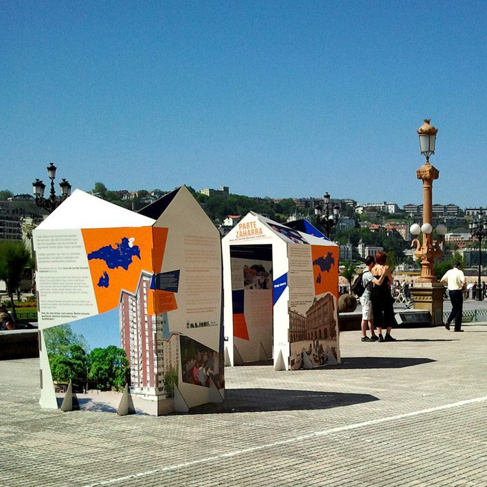 Cartonlab ha participado en la producción de la exposición sobre participación ciudadana en los barrios y en los pueblos del Pais Vasco. ¡Los Barrios y pueblos fortalecen Donostia!, La exposición consiste en una mini-ciudad formada por casas de carton que contienen el contenido y material gráfico. Cada casa recoge la información relativa a un pueblo o barrio en particular. El montaje inaugural del proyecto completo se llevó a cabo al aire libre en distintos espacios públicos de la ciudad y la exposición estará en itinerancia a lo largo de varios meses.