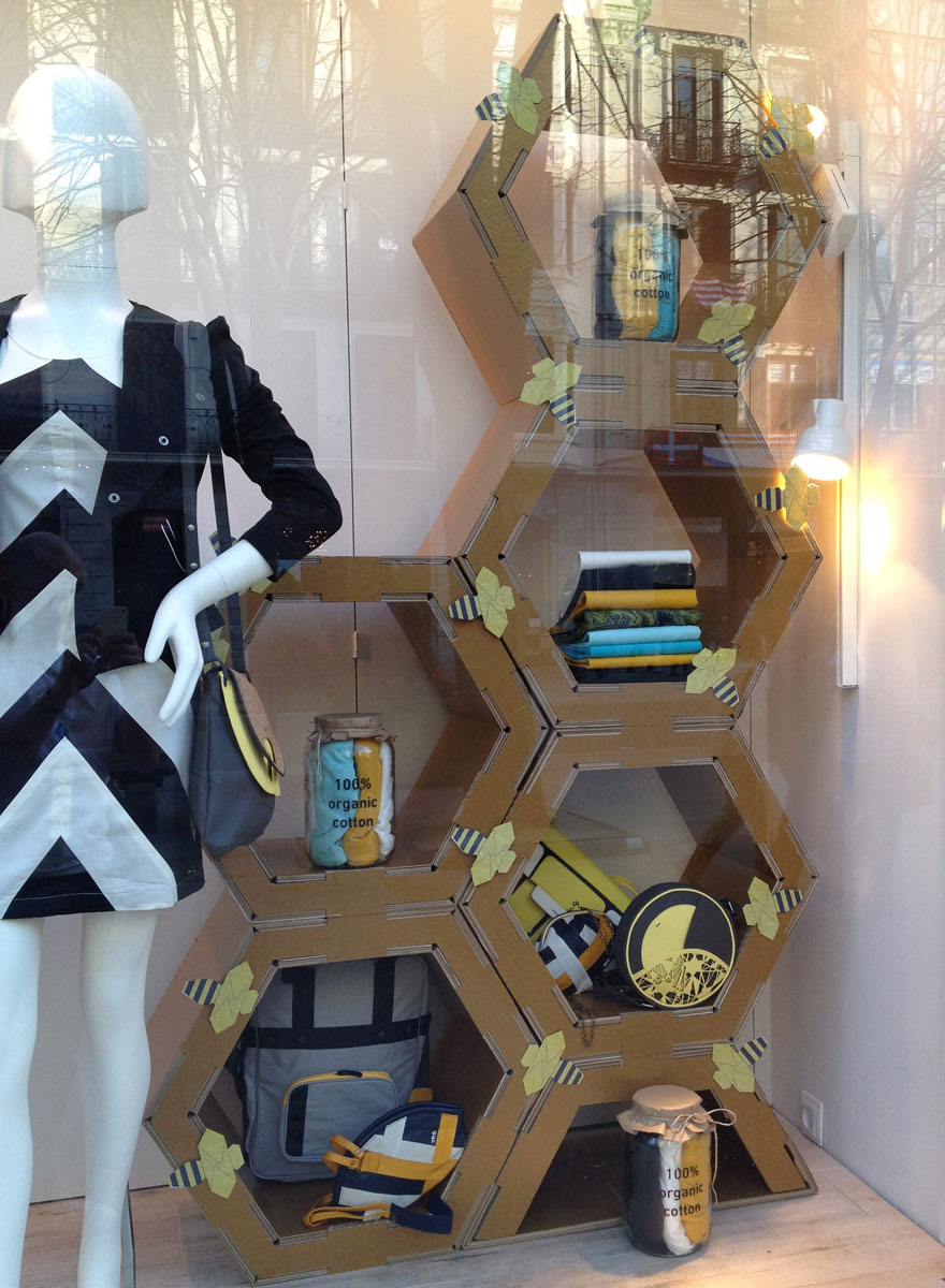 La empresa vasca de moda y complementos Skunkfunk es pionera en su compromiso por la sostenibilidad , el eco-diseño y la fusión del arte-moda. Para una de sus campañas, diseñamos unos expositores de cartón compuestos por módulos hexagonales , automontables y reconfigurables. Se arman en pocos minutos y se pueden ver de distintas formas. Los expositores se ubicaron en las tiendas de Bilbao y Barcelona, creando diferentes estructuras para mostrar los productos del establecimiento de forma atractiva.