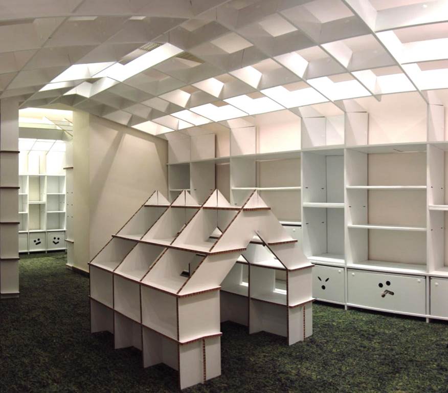 -Nivel inferior: Un espacio evocador que juega con la idea de la casa a distintas escalas, de forma que tanto niños como adultos puedan sentirse integrados en un mismo entorno participativo.