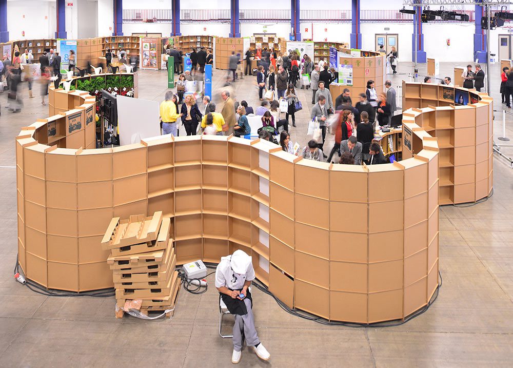 Cartonlab, por encargo de BGrupo llevó a cabo la producción y el diseño de los 25 stands fabricados 100% en cartón que ocupaban por completo el Pabellón de Convenciones de la Casa de Campo de Madrid.