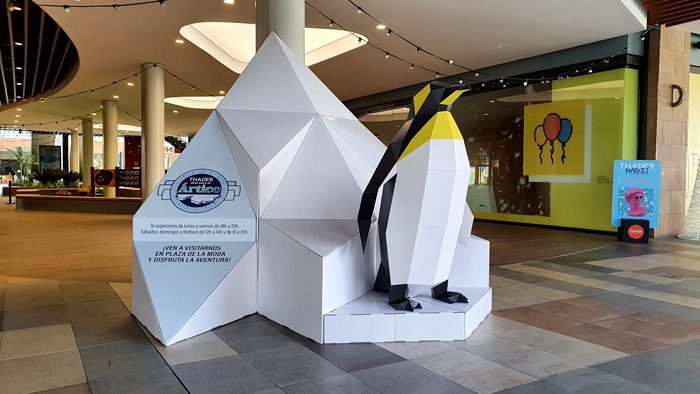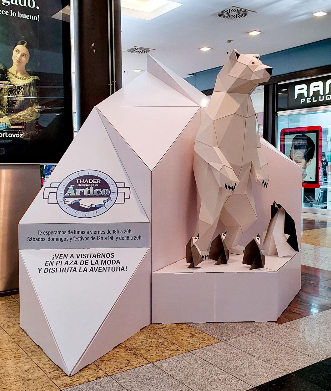 El CC Thader (Murcia) necesitaba una decoración navideña interactiva, versátil y divertida para público familiar. Se puso en contacto con nosotros y les lanzamos una propuesta. En busca de la ideas más frescas, nos fuimos hasta el Ártico y allí nos quedamos, celebrando más el invierno. Diseñamos icebergs, animales polares e incluso un parque infantil de cartón. Os contamos los detalles.
