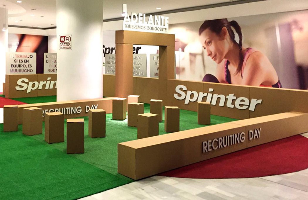 Hemos participado en el diseño de evento #recruitingday que ha llevado a cabo la empresa Sprinter en el Centro Comercial La Vaguada de Madrid. Se trata de una jornada enfocada a la selección de personal de ventas para sus tiendas de la capital.