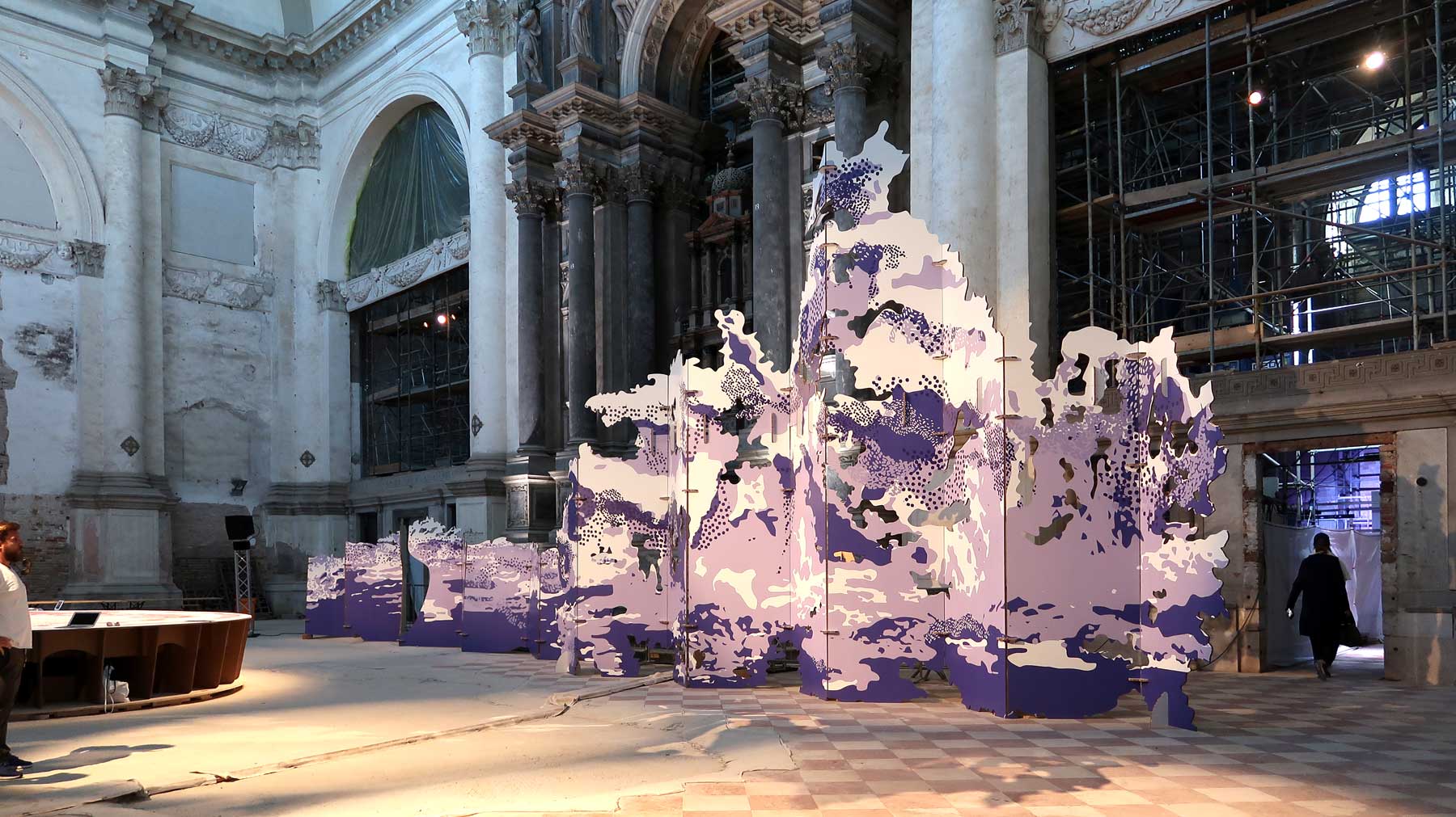 Las especiales características del lugar del evento (la espectacular iglesia de San Lorenzo en Venecia) añadían una complejidad extra en cuanto a logística y producción. De esta forma, todo lo que se fuera a producir tenía que ser ligero, fácil de transportar por dos personas, rápido de instalar y que no generara residuos ni contaminación de ningún tipo. Además, las piezas deberían ser totalmente desmontables y reutilizables.