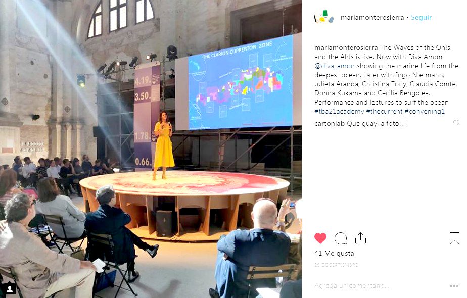 TBA21: The Current es un proyecto de investigación colectiva sobre los océanos que busca proporcionar una plataforma para favorecer el pensamiento interdisciplinario, el intercambio de ideas y la producción de nuevos conocimientos. El programa se centra en expediciones anuales en el mar y en la tierra. Cada ciclo de The Current está dirigido por uno o más Líderes de Expedición seleccionados por The Academy. En la presente edición el comisariado corre a cargo de Chus Martínez.