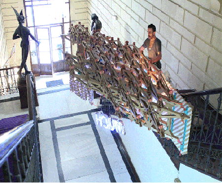 Se trata de una espectacular estructura lumínica construida con más de 5000 piezas de cartón, programada para moverse y reaccionar ante los estímulos de los usuarios de la sala.