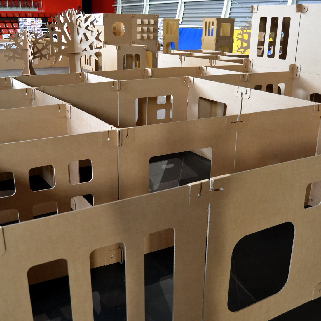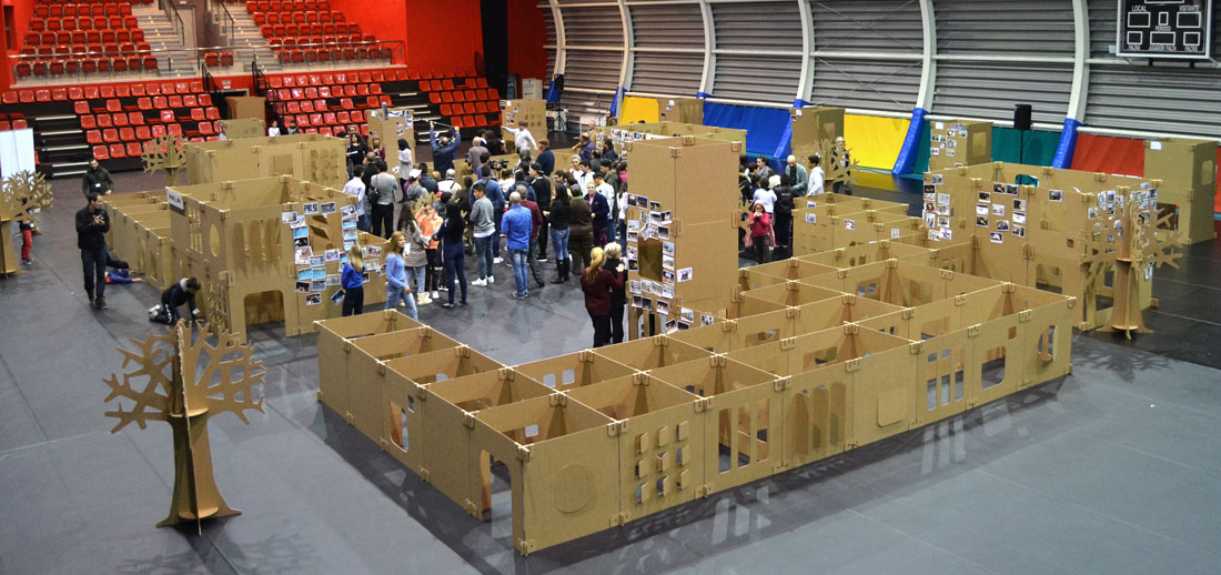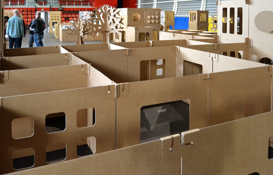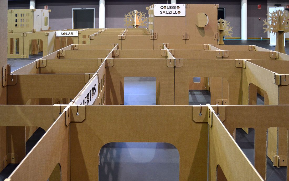 Al plantear esta ciudad laberinto construida en grupo, pusimos al servicio del proyecto las ventajas del diseño en cartón. Nos adaptamos a la filosofía del evento, facilitando el trabajo en equipo e incorporando un mensaje sostenible de reducción de huella ambiental en los procesos. Todo en beneficio de la comunidad.