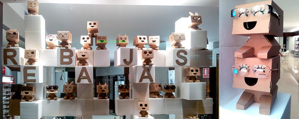 El de Las Vegas no es el primer proyecto en el que trabajamos con empresas dedicadas a la óptica. Algunos ejemplos ilustrativos de diseño en cartón para ópticas son el stand para Zen en la Feria MIDO de Milán, el interiorismo de la Óptica Almería, el expositor diseñado para Mórtima o los simpáticos muñecos sonrientes de escaparate para Multiópticas.