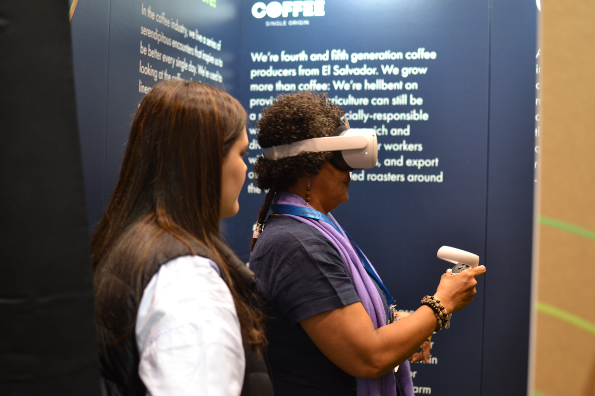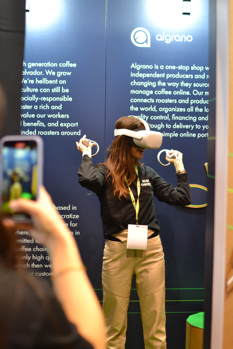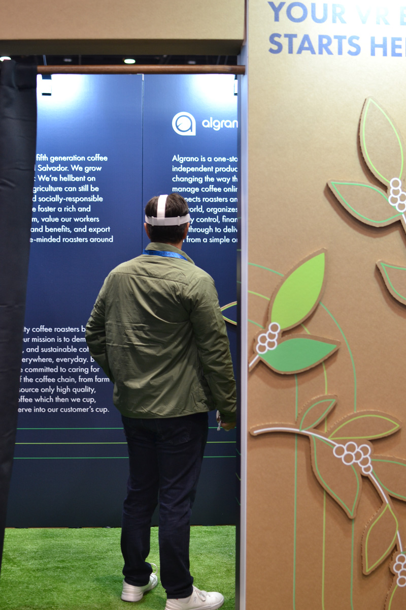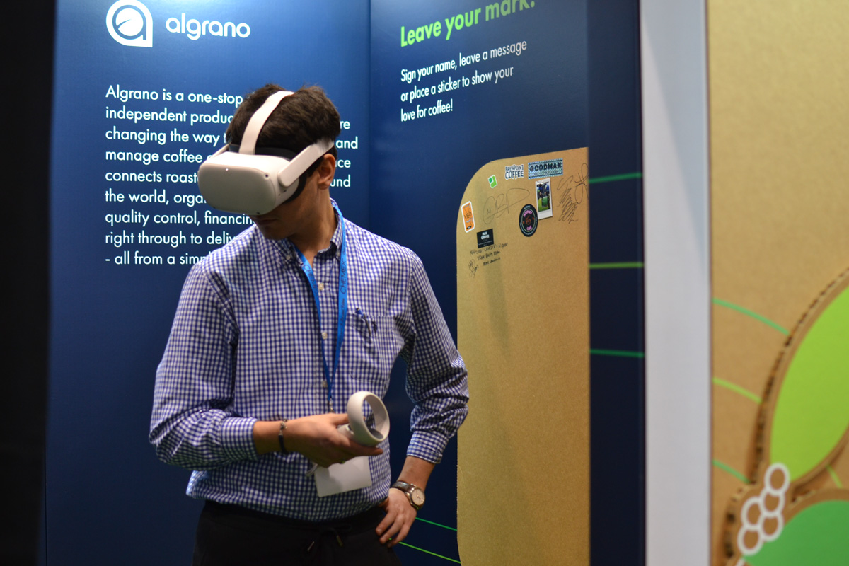 Un stand mejora mucho con la posibilidad de interacción. En el de Cropster incluimos a petición del cliente un espacio de realidad virtual que sirvió para acercar a usuarios y visitantes a la forma de trabajo y filosofía de la marca. Una forma de profundizar en la difusión y mejorar la experiencia de uso del visitante.