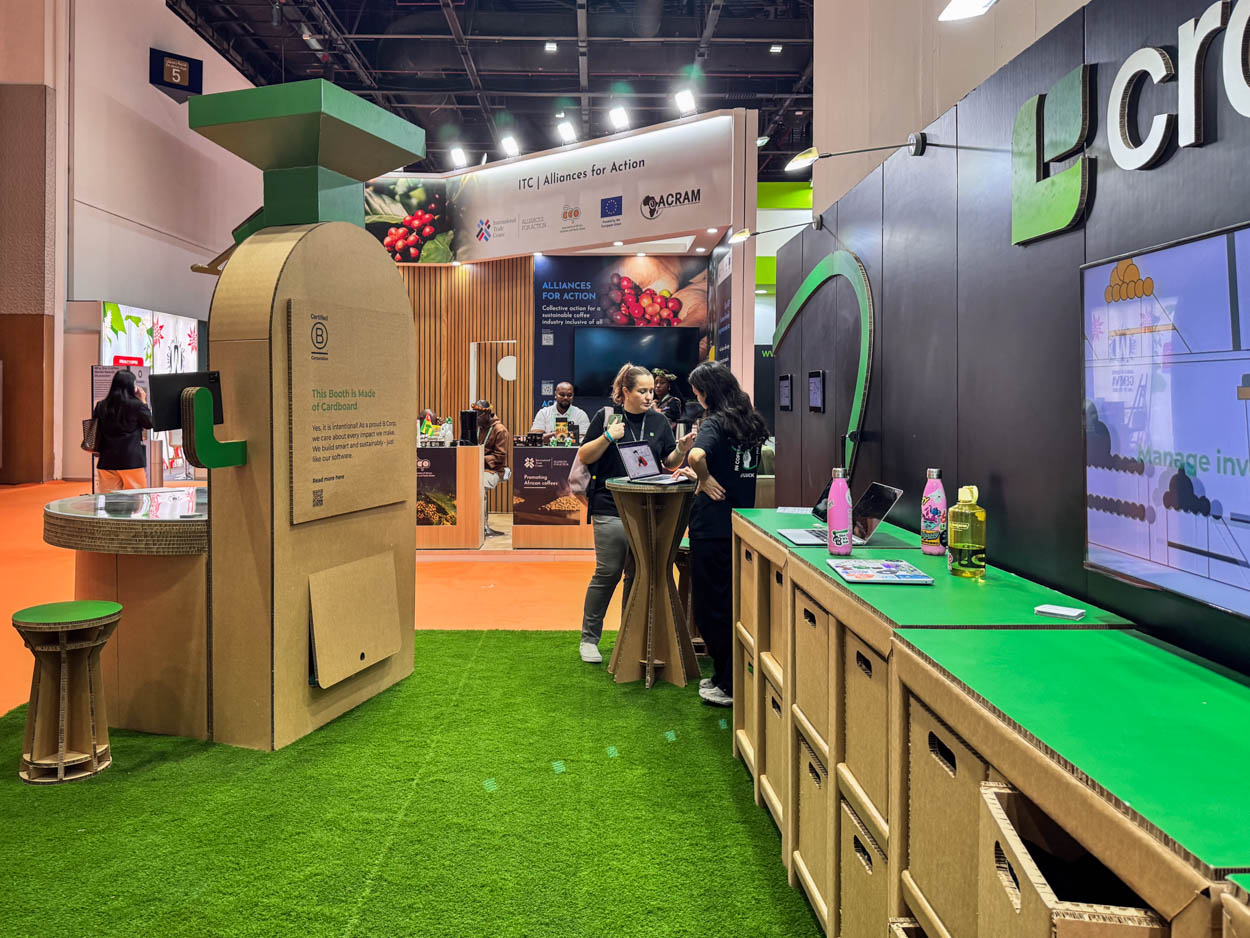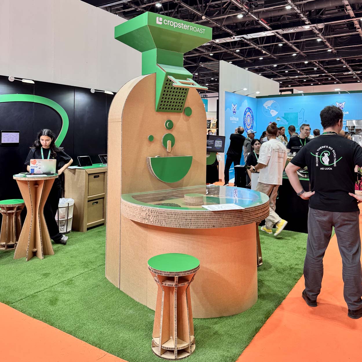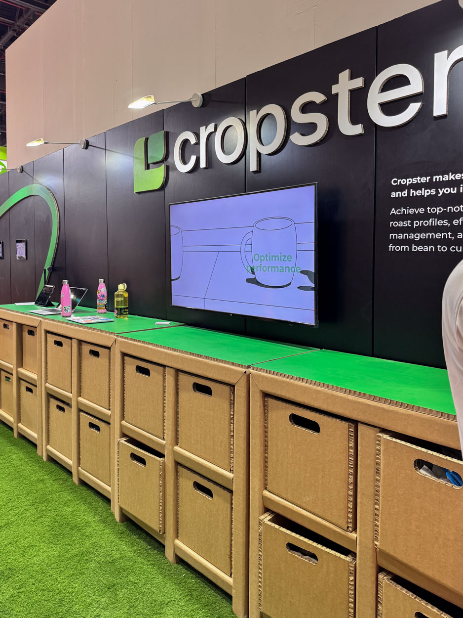 Contactaron con nosotros para lograr sus objetivos y gracias al diseño en cartón creamos un stand para feria de café de referencia para la presencia de Cropster en ferias internacionales.