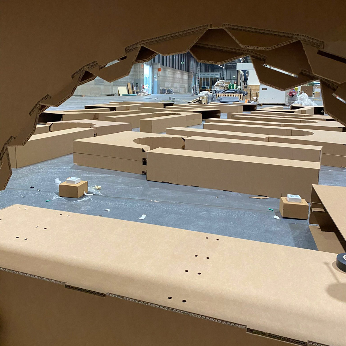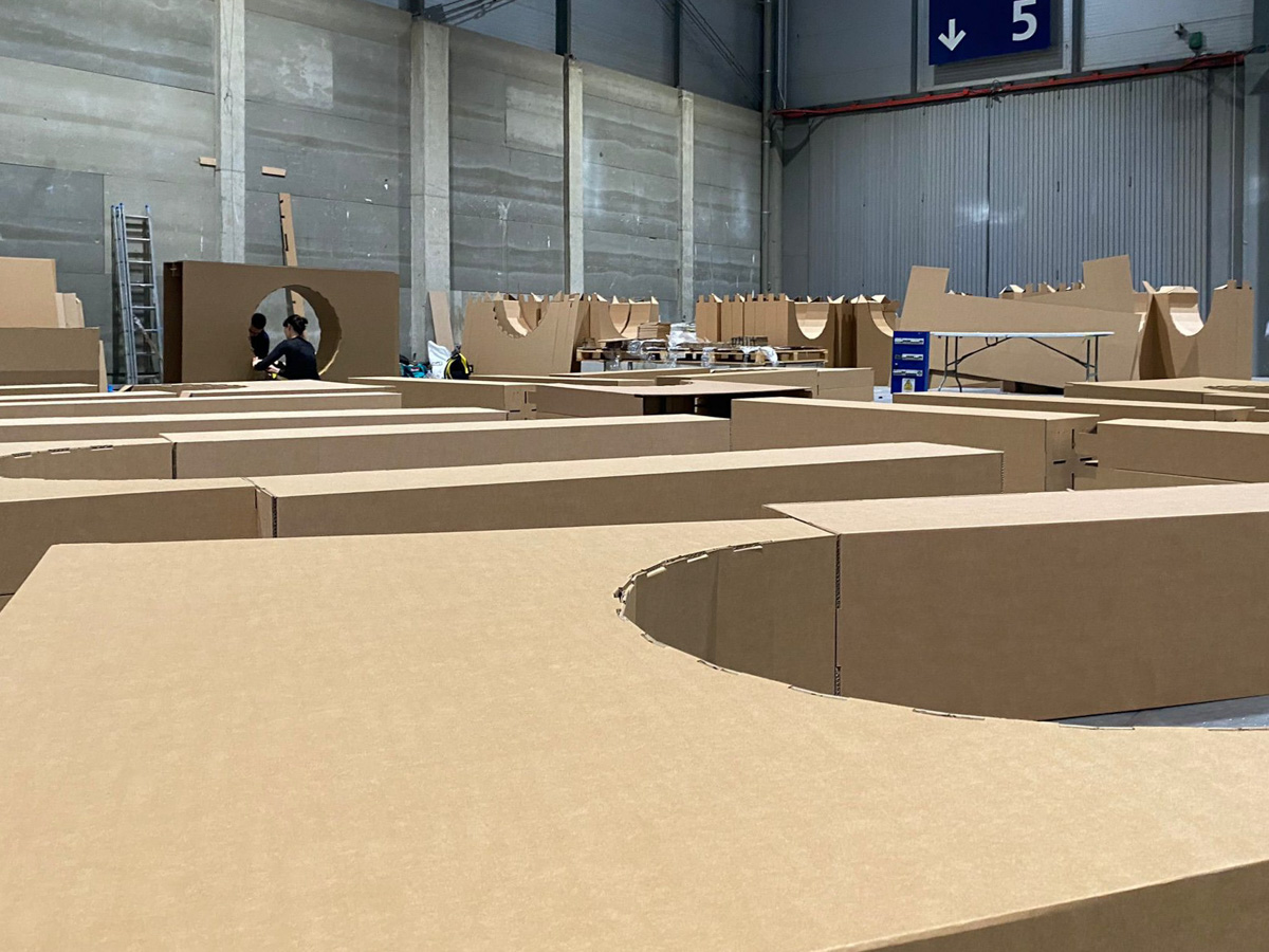 Matter Materials es una distribuidora de materiales de construcción innovadores y respetuosos con el medio ambiente. Su presencia en la feria Rebuild supuso un escaparate para el que nos plantearon un reto creativo. Se trataba de materializar en cartón su diseño de stand para feria de construcción sostenible. un amplio espacio de exhibición que combinara innovación, sentido práctico y un claro compromiso ecológico