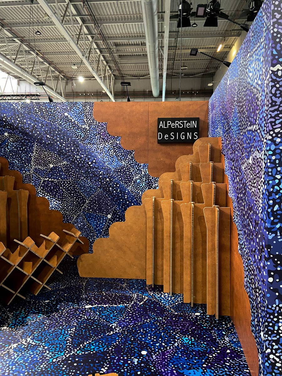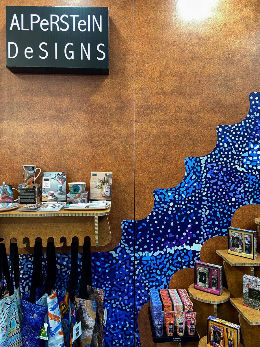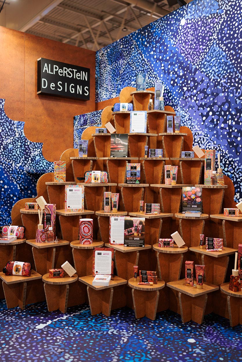 Alperstein Design, marca australiana de cosmética, textil y menaje de hogar caracterizada por sus estampados de arte indígena, apostó por un stand de 3×4 metros para su aparición en la feria Maison et Objet en París.
