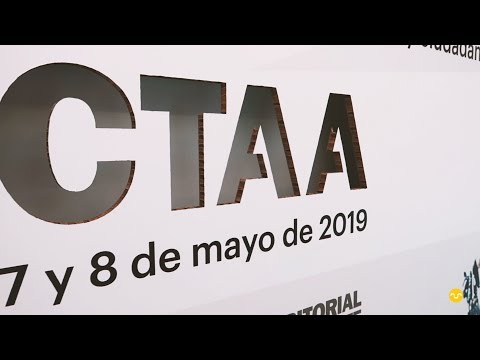 El escenario principal necesitaba un fondo adecuado. Debía de cumplir con necesidades estéticas, corporativas e informativas. Quedaron cubiertas gracias a la gráfica impresa y a la gran pantalla de apoyo integrada. También se incluyeron las siglas del CTAA retroiluminadas.