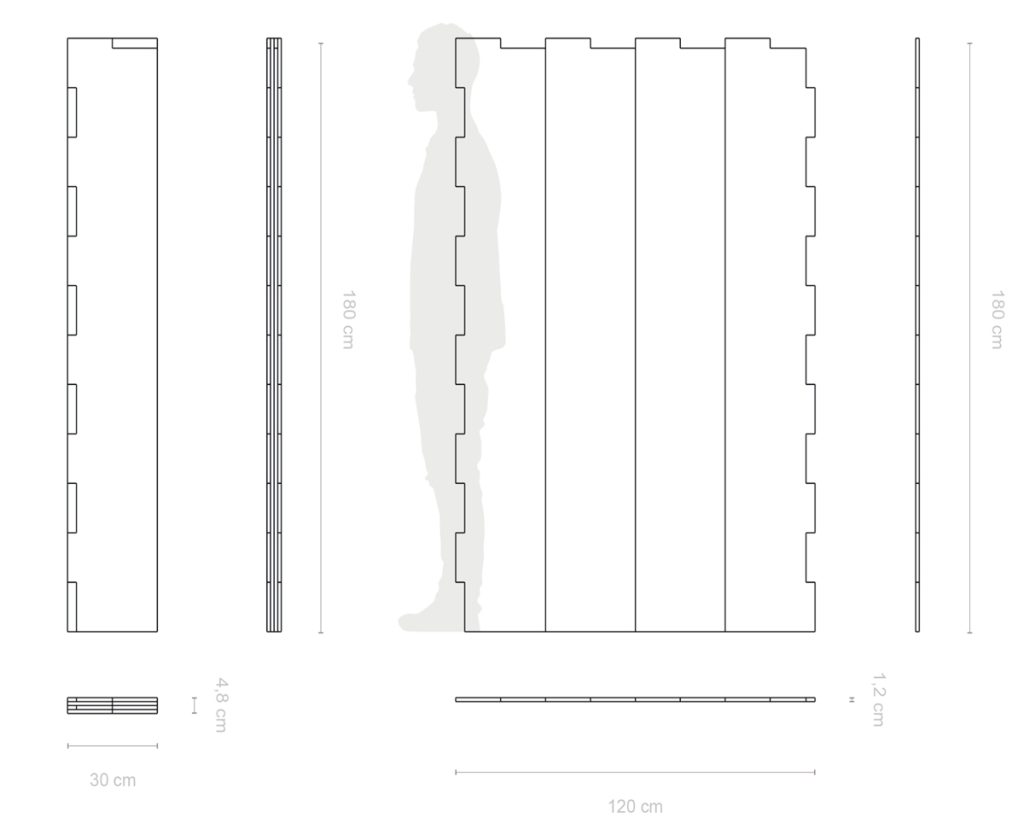 Mediante un sistema de cortes realizados con máquina CNC, conseguimos fabricar módulos plegables fieles al diseño original. Esto permite reducir sus dimensiones para un adecuado transporte y almacenaje. Además, el característico dentado perimetral de los módulos permite conectarlos entre sí de forma lateral, ajustándose a cualquier espacio, así como colgar prendas o complementos en su parte superior. Es un elemento ideal para espacios de coworking, oficinas o bibliotecas.